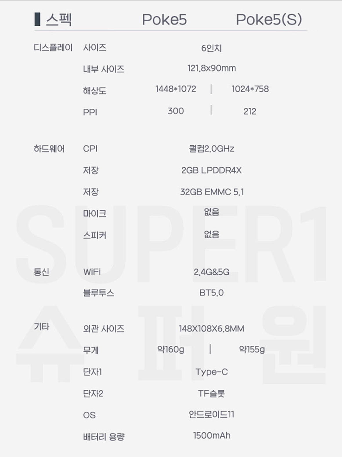 이 두 가지의 조건을 모두 만족시키는 이북리더기가 있었으니 바로 오닉스 북스 포케5s 이북리더기입니다.
