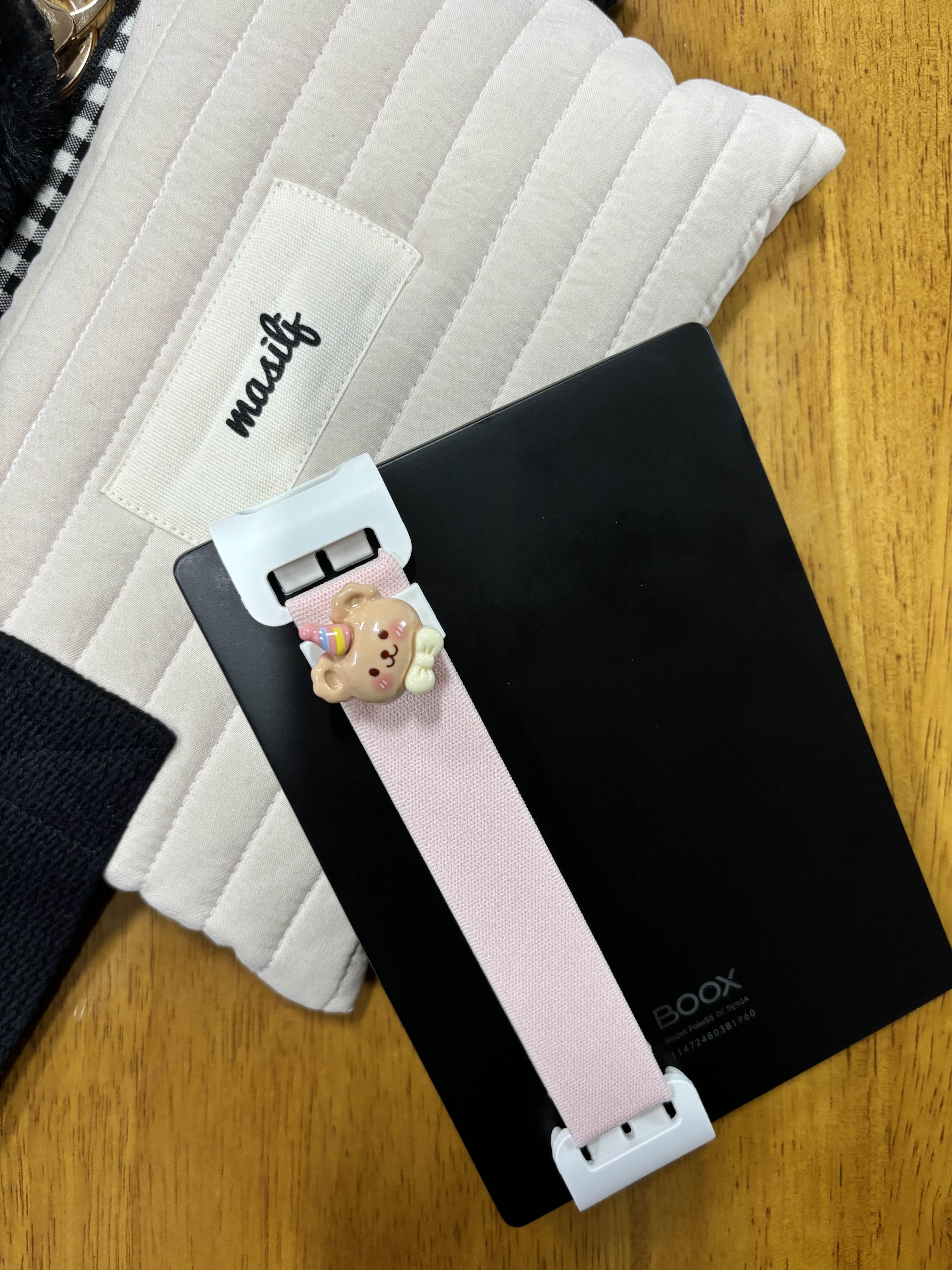 뒤에는 스트랩과 귀여운 지비츠를 달아 주었습니다. 스트랩을 손에 끼우고 책을 보니 떨어뜨릴 염려가 없어서 매우 좋았습니다. 특히 저는 물건을 잘 떨어뜨려서 설탕액정일는 이북이 걱정이었는데 아이템도 잘 갖춰져서 만족스러운 구입이었습니다.