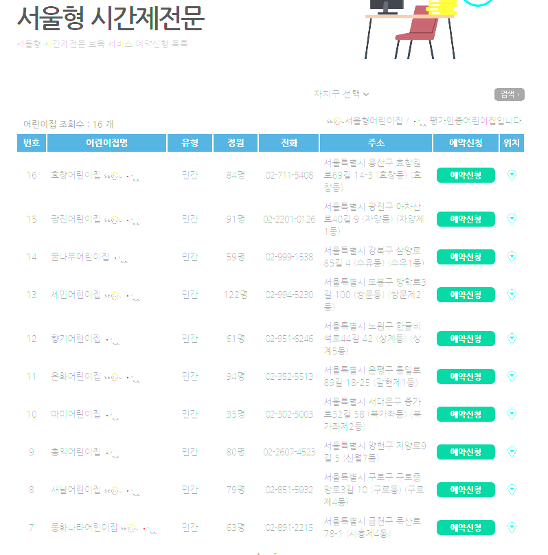 보육서비스 예약 > 서울형 시간제전문 | 서울시 보육포털 서비스