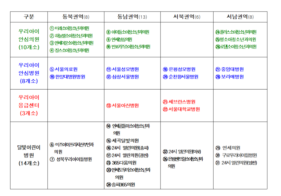 서울형 야간, 휴일 소아 환자를 위한 소아과 안내