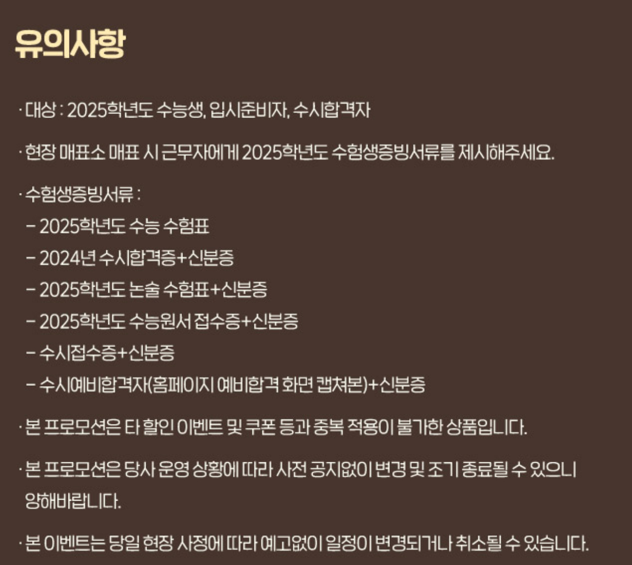 스타벅스는 2024년 11월 13일부터 30일까지 약 보름간 수험표를 보여주신 분들에게 이벤트 음료 주문 시에 무료 사이즈업 혜택을 제공하고 있습니다.