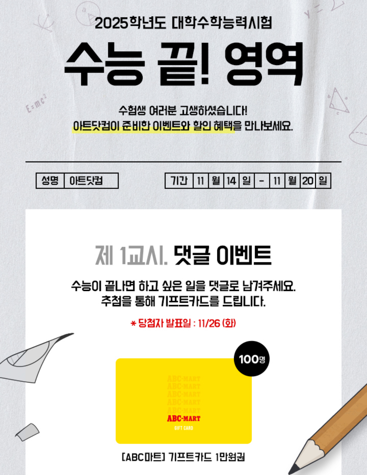 ABC마트는 댓글을 달아주시는 분들에게 추첨 100명을 뽑아 ABC 마트 상품권 1만원을 제공합니다. 링크는 아래에서 상세히 확인하실 수 있습니다.