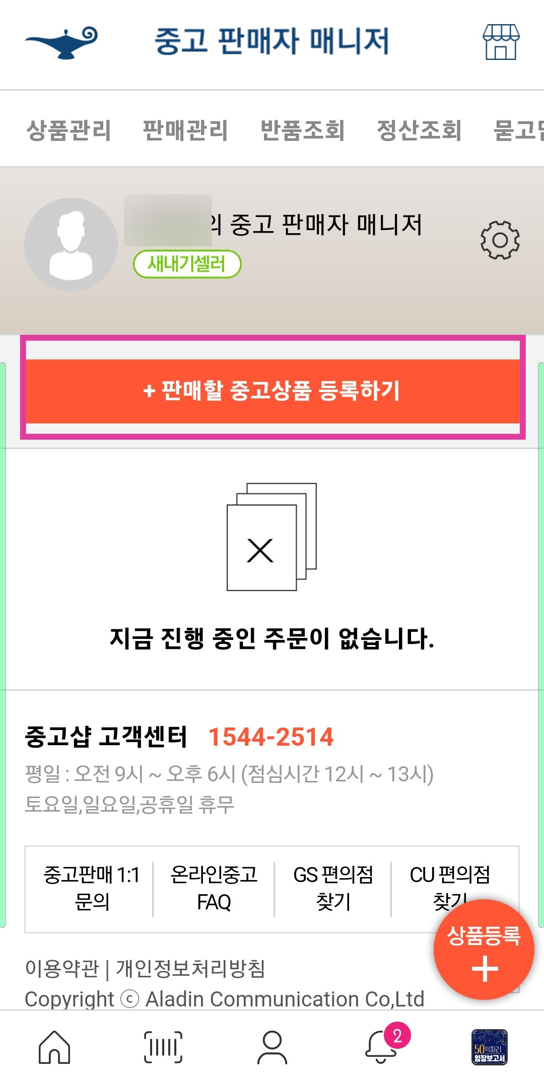 만약 알라딘에 팔지 않고 일반 사람들에게 팔고 싶은 분들이라면 중고판매자 매니저 화면에서 책을 등록하시는 것을 추천합니다. 판매할 중고상품 등록하기 라는 주황색 버튼을 클릭하시면 다음 화면이 나옵니다.