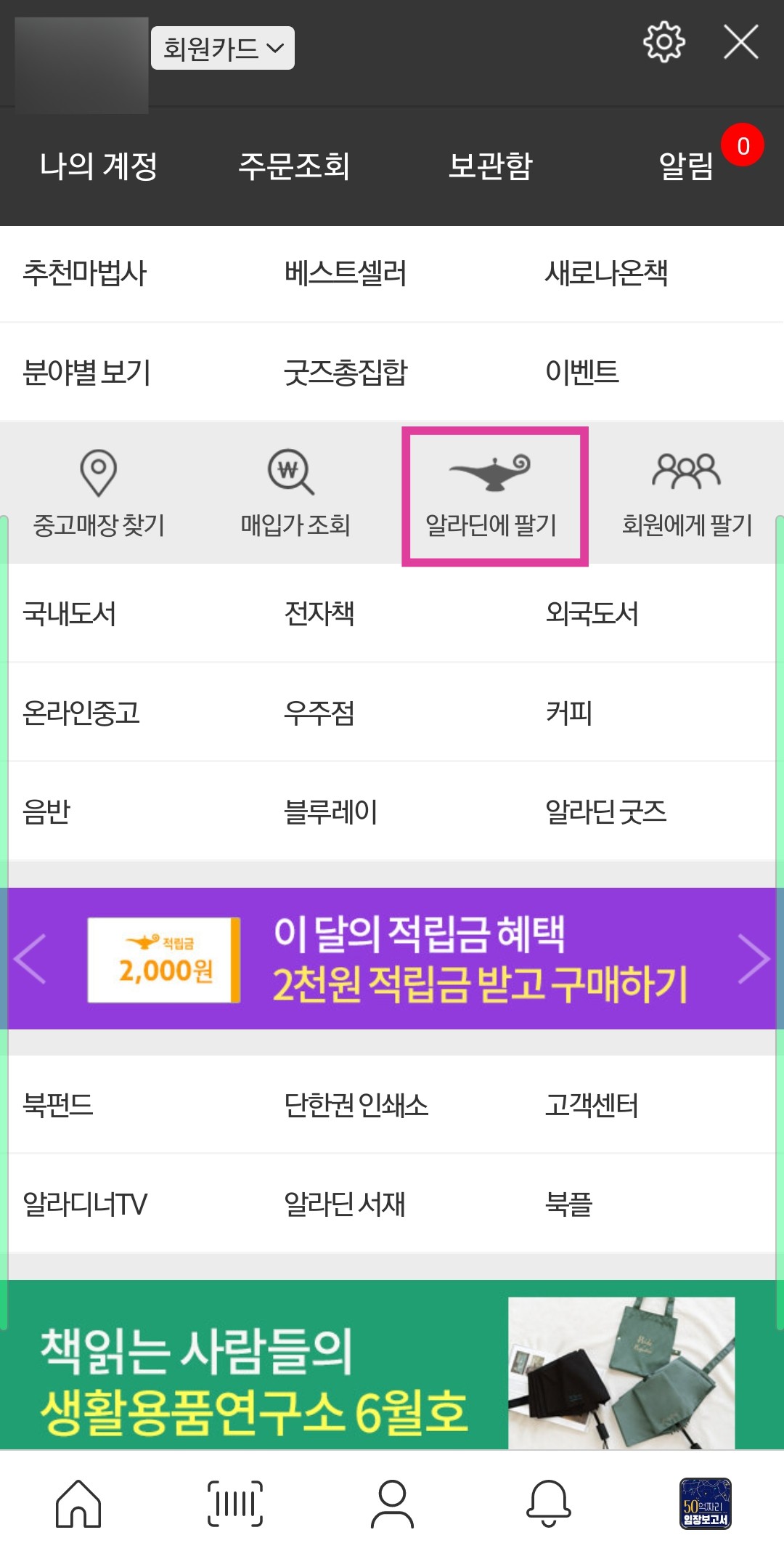 알라딘 어플의 메뉴를 켜면 ‘알라딘에 팔기’ 메뉴가 있습니다. 중고판매자로 일반 사람에게 파는 것이 아니라면 가장 빠르게 정산받을 수 있는 방법이 역시 알라딘에 파는 방법입니다. 오늘은 이 방법에 대해 소개해드리고자 합니다.