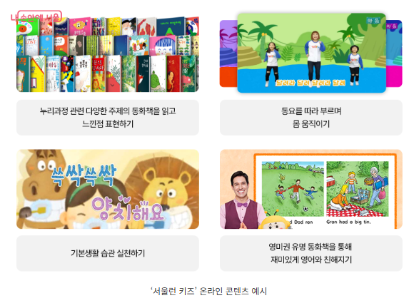 추후 서울시에서는 서울런 키즈의 단기 프로그램으로 YBM넷의 온라인 영어도서관 화상 수업인 YBM영어동화놀이터 대상자도 선정하여 서비스를 제공할 예정입니다. 아이의 발달에 맞게 애니메이션 동화를 보고 난 뒤 선생님과 화상으로 대화하는 형식으로 수업이 진행된다고 합니다. 앞으로 이런 시범사업들이 자리를 잡아서 모든 아이들에게 다양한 콘텐츠가 제공되었으면 하는 바람입니다.