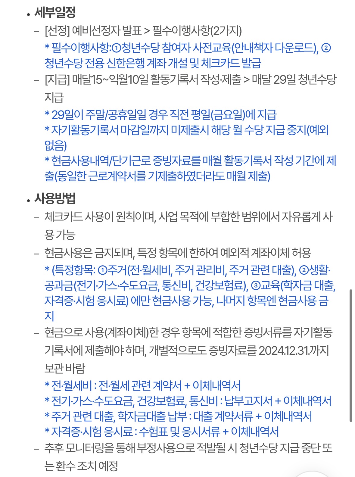 매월 29일 청년수당이 지급되며 사용은 ‘체크카드 사용‘이 원칙입니다.