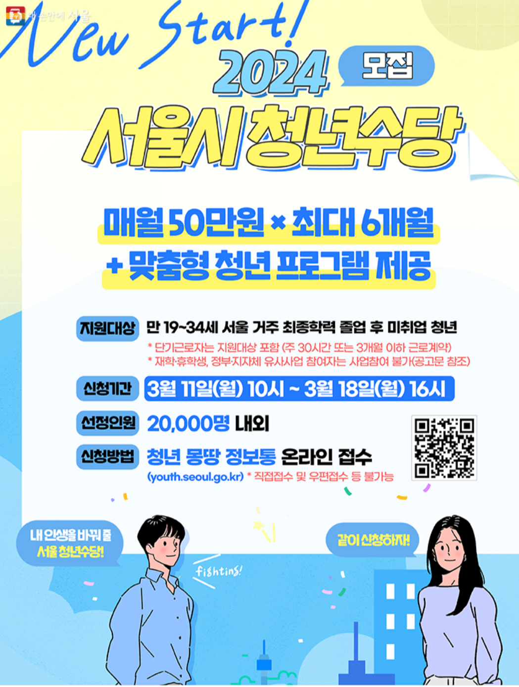 서울시에서는 2024년 청년수당을 받는 청년들을 모집하고 있습니다. 매월 50만원씩 최대 6개월을 받을 수 있으며,